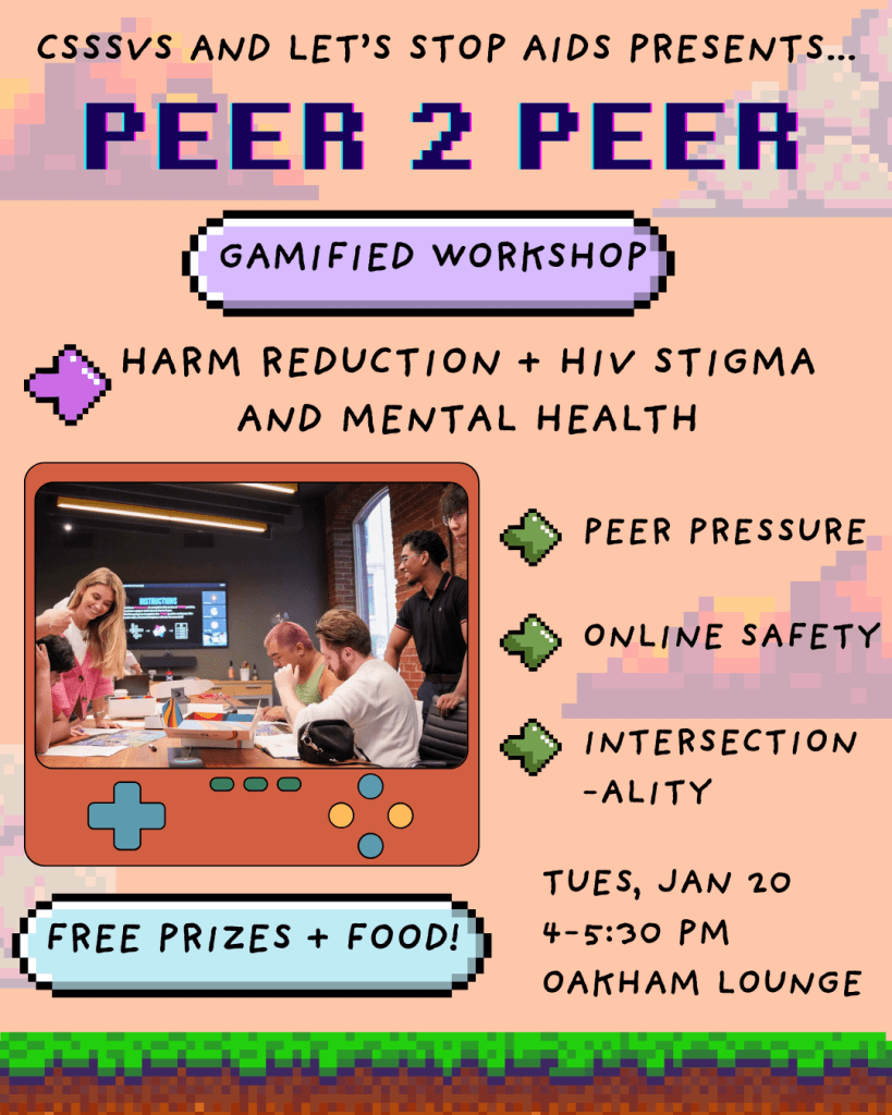 Learn about Harm Reduction + HIV Stigma and Mental Health at this fun, interactive, peer run, gamified workshop run by our friends at Let’s Stop Aids! Free food and refreshments included! For registration, please visit this form.
